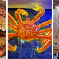 Served with two corn and two potatoes, 1/2 lb shrimp (no head), 1/2 snow crab, and 1 lobster tail.
